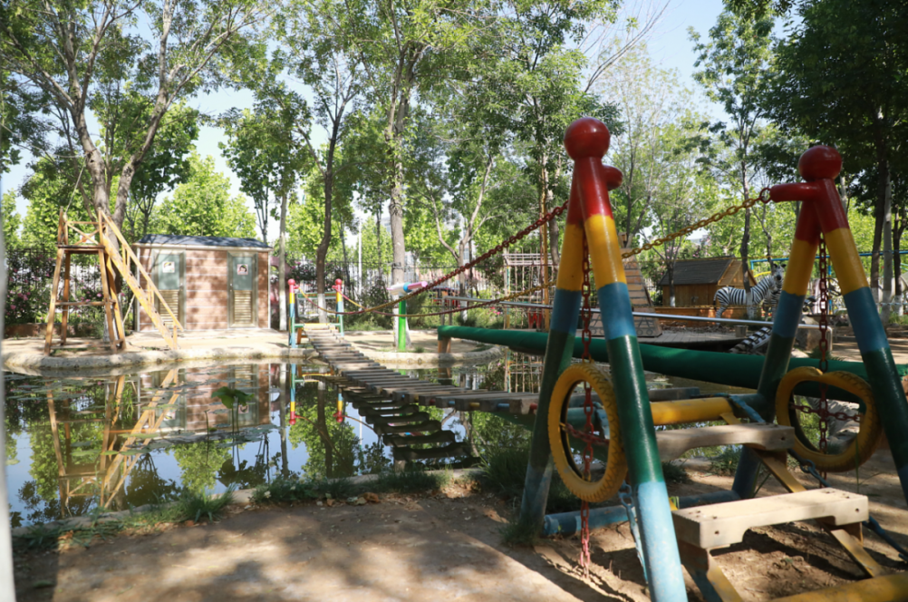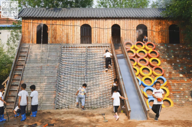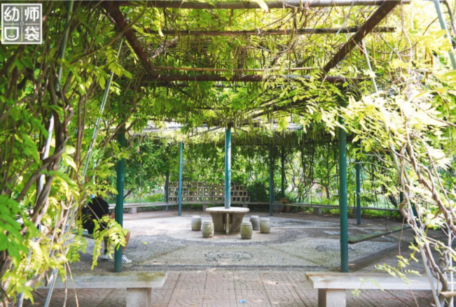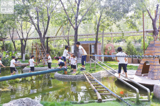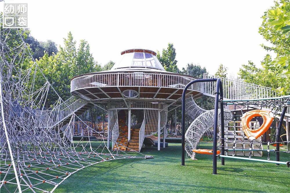 但这里有近50亩的幼儿园园区,有各种丰富多彩的游戏活动,有亲近自然的瓜果田园,还有充满巧思、趣味以及充分考虑儿童特点的大型户外自制玩教具,更有在户外