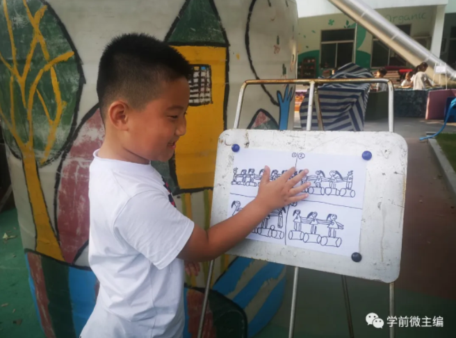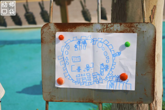 这是孩子们的设计图,孩子们在进行户外游戏和建构前,会对当天的活动有所计划。在活动后,教师和孩子们一起回顾活动中拍摄的视频,进行反思与探讨。这一切,都是以儿童为主体去完成的,教师只是起到协助、观察、引导的作用。