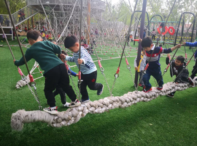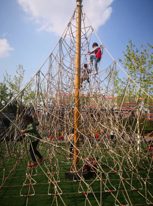 “学前微主编”在观察利津二幼的设施结构和幼儿游戏后是这么总结的,笔者以为一语中的:首先,孩子本身是有自我防御机制的,对于危险会有本能和判断,会根据自己的能力选择相应的区域与玩法;其次,“利津游戏”在设计之初,就充分考虑了孩子的层次性和安全性,并不是“拍脑袋”的仓促上马,每一个区域、每一个大型户外自制玩具,都是在赵兰会和团队的研发下,经过反复的实践、调整、再实践,才最终实施的……