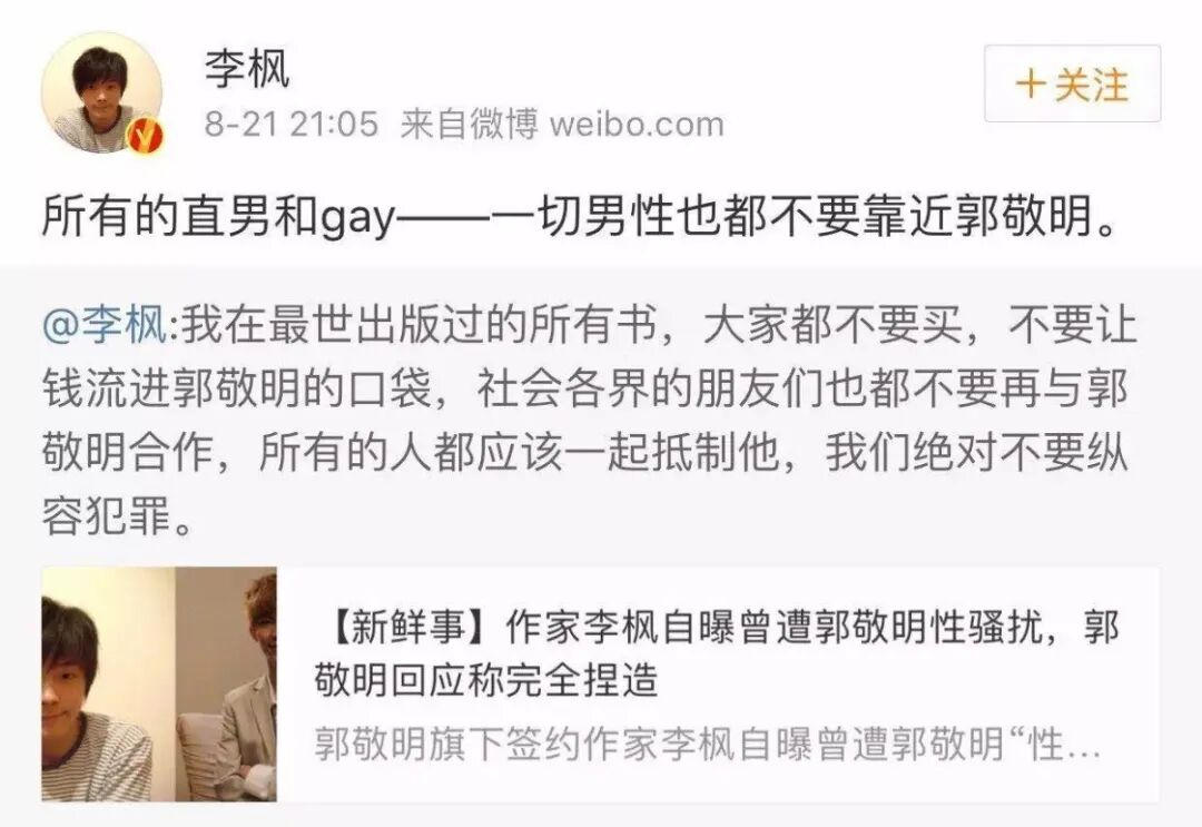 接着,郭敬明就迅速发博称李枫在造谣,已诉诸法律。