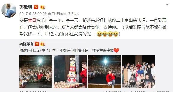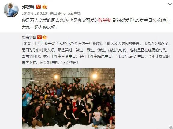 接着就有博主扒出【小时代】时期郭敬明额微博,其中24条都是关于陈学冬的,其他的就是转发杨幂3条,郭采洁1条,剩下的都是剧宣。