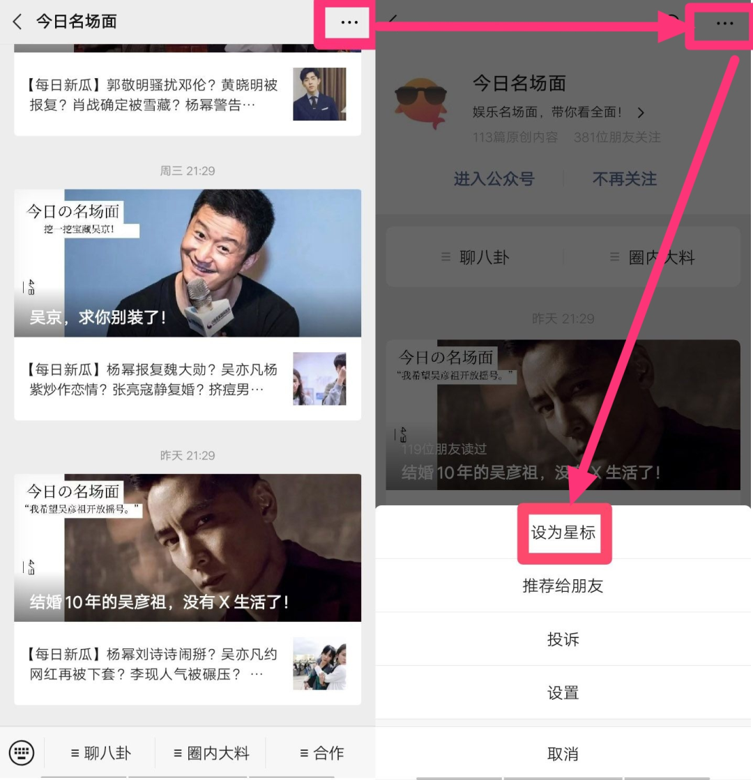 按照下图方式将【今日名场面】设为星标,就可以每天第一时间收到最新推送爆料哦。