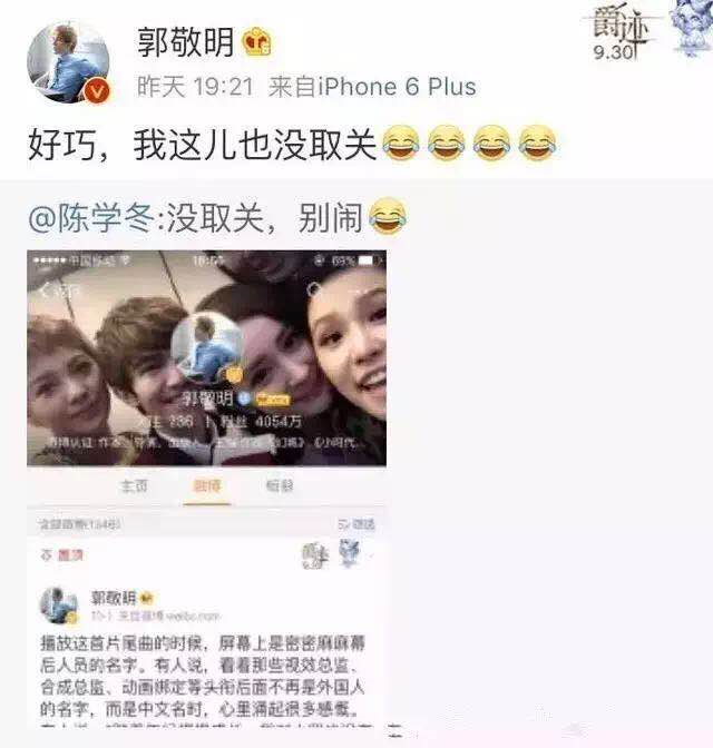 于是冬冬发博回应“没取关”,郭敬明也转发表示“好巧”。