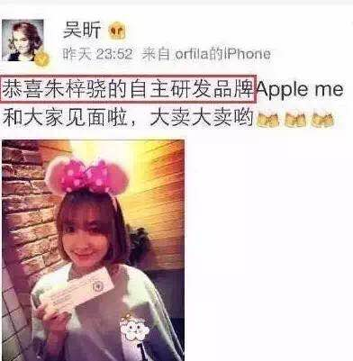 15年的时候,吴昕还发过一条安利朱梓骁品牌的微博,但也没掀起什么风浪。