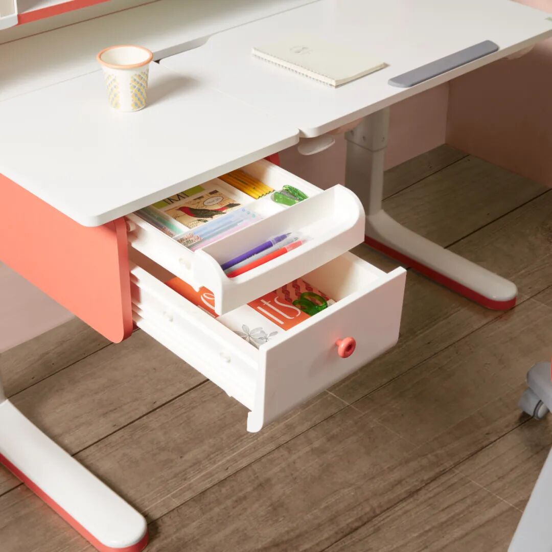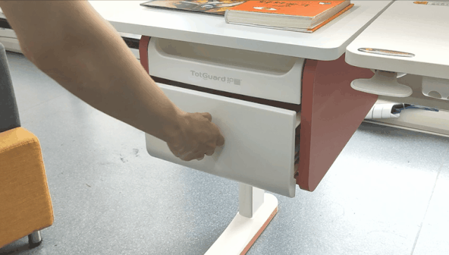 左侧还有一个双层抽屉,孩子的画笔、铅笔、橡皮等文具全都可以放进去,培养孩子收纳的好习惯。