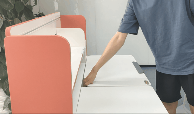 桌面倾斜的情况下,依然可以实现升降。坐着就能直接调整,最高可足足上调 15cm!