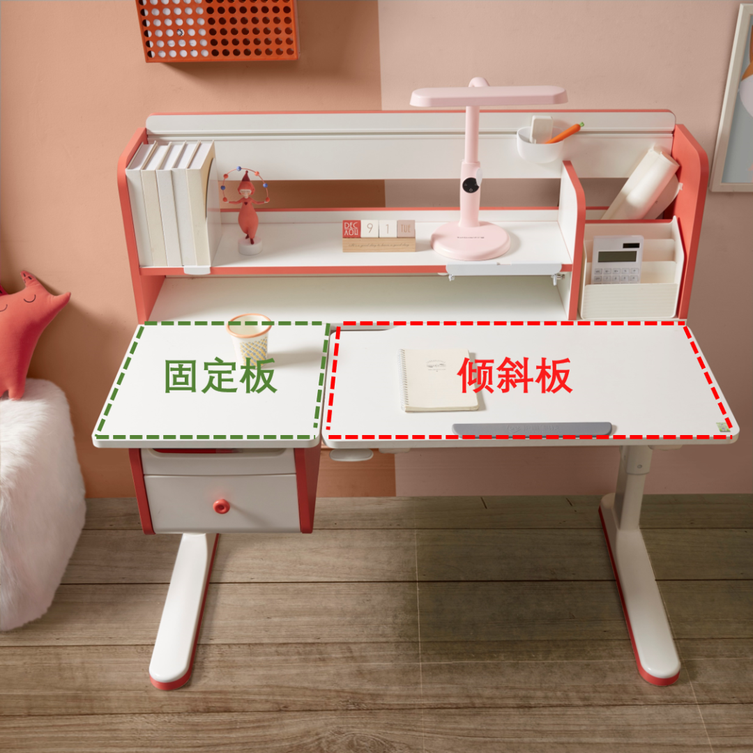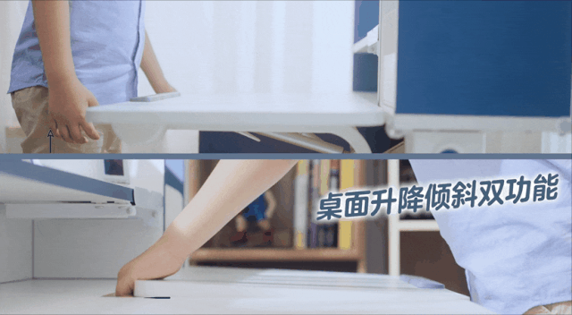 之所以敢自称双升降,就不得不提这款护童学习桌的一大亮点了。那就是「倾斜板也可以升降」!市面上普通学习桌可不具备这个功能哦。