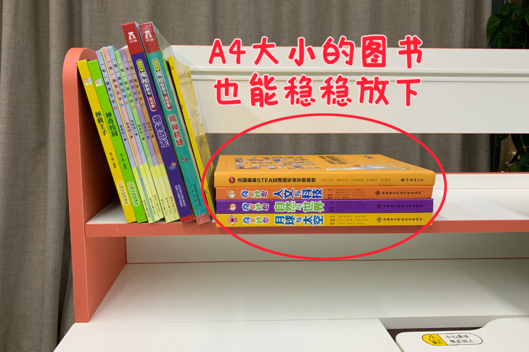 加深书架:宽度有足足 24cm,孩子的课本、作业本、A4 大小的书都能放得下;文具、台灯、闹钟等物品,也都有了好去处。