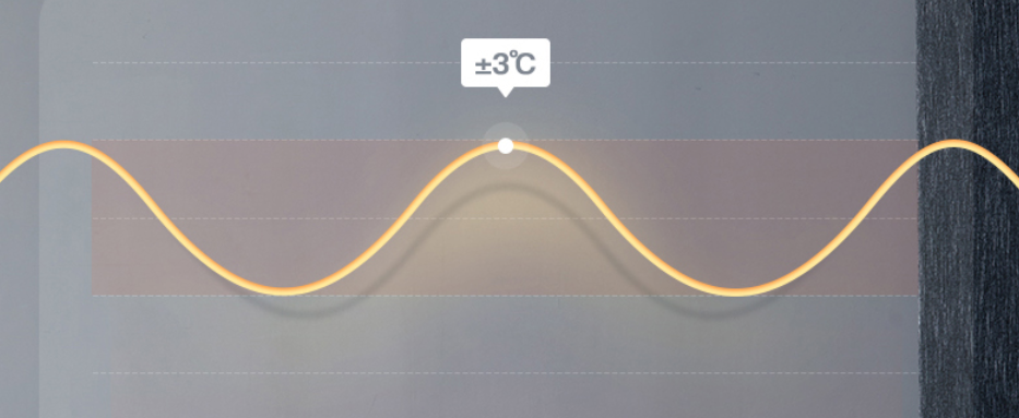 这款取暖器内置灵敏温控器,一旦室内温度达到了设置温度,就开始自动降低功率,把室温牢牢控制在 ±3℃以内。这样一来,就不会忽冷忽热,导致身体不适啦!