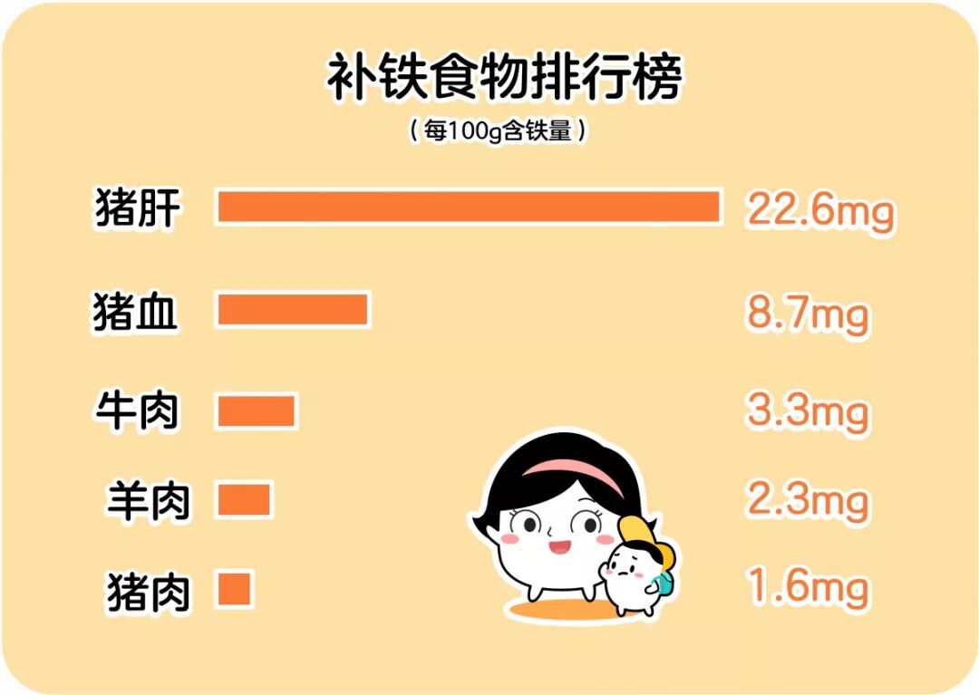 来自肉类、肝脏等动物性食物中的铁是血红素铁,吸收率高,是当之无愧的最佳补铁来源!