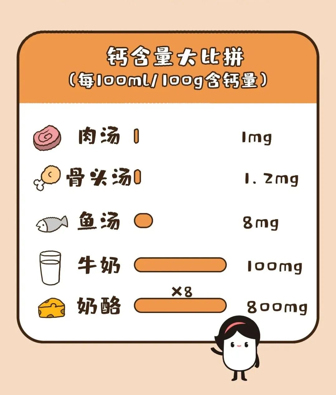 1 斤骨头炖出来的汤,钙含量还抵不上 5ml 牛奶。